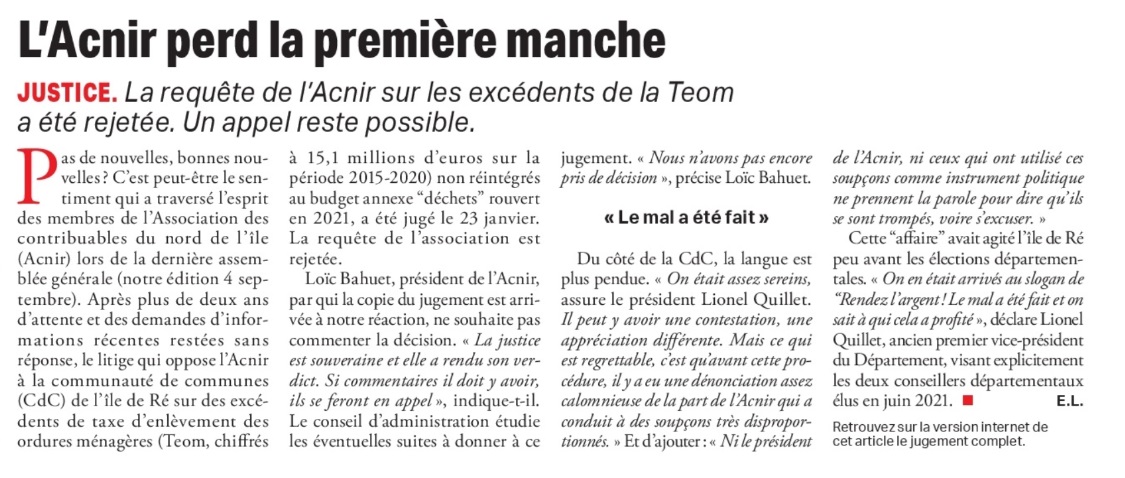 A la suite de la demande du Service Affaires Juridiques de la Communauté de Communes de l'Ile de Ré, les mentions relatives à l’identité des agents de la Communauté de Communes de l’Ile de Ré ayant transmis des documents ou ayant participé à des réunions ont été effacées dans les documents ci-dessous.